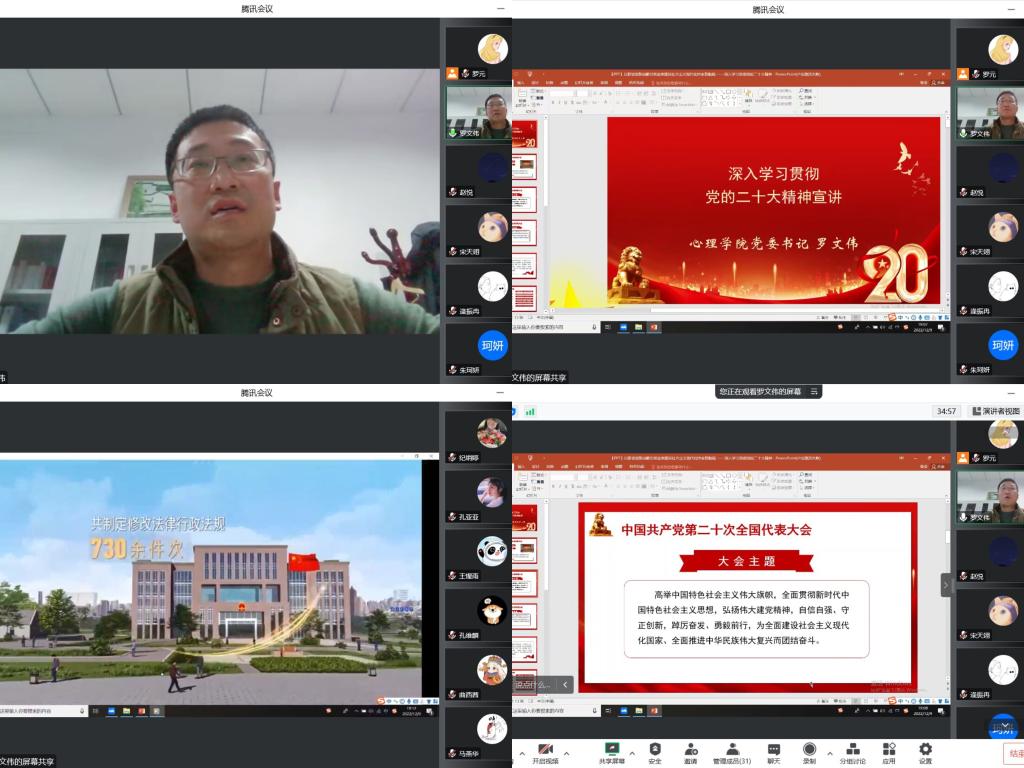 研究生党支部组织开展线上主题党日活动。本次活动主题为“ ‘心’青年 奋斗正当时;心向党 献礼二十大”,学院党委书记罗文伟通过党的二十大精神专题宣讲,为全院研究生党员带来了一场生动的党课。
