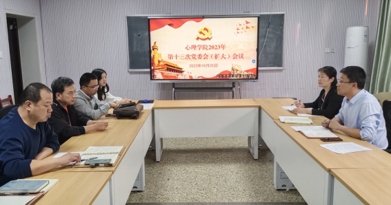 于201室召开2023年第十三次党委会(扩大)会议,学院党委委员出席会议,团委书记赵旭涛、研究生党支部书记周月列席会议,会议由学院党委书记罗文伟主持。