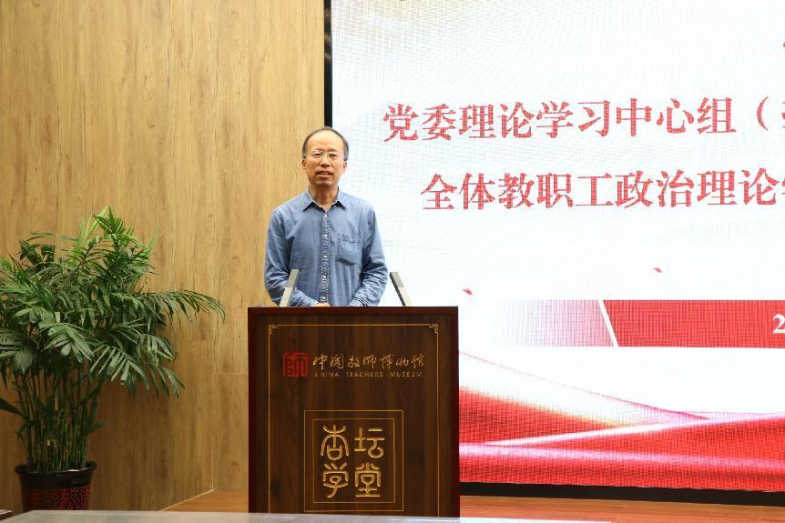 党委理论学习中心组(扩大)在中国教师博物馆讲习馆举行2024年度第三次集体学习活动。党委理论中心组成员、全体教职工出席会议,会议由党委书记罗文伟主持。