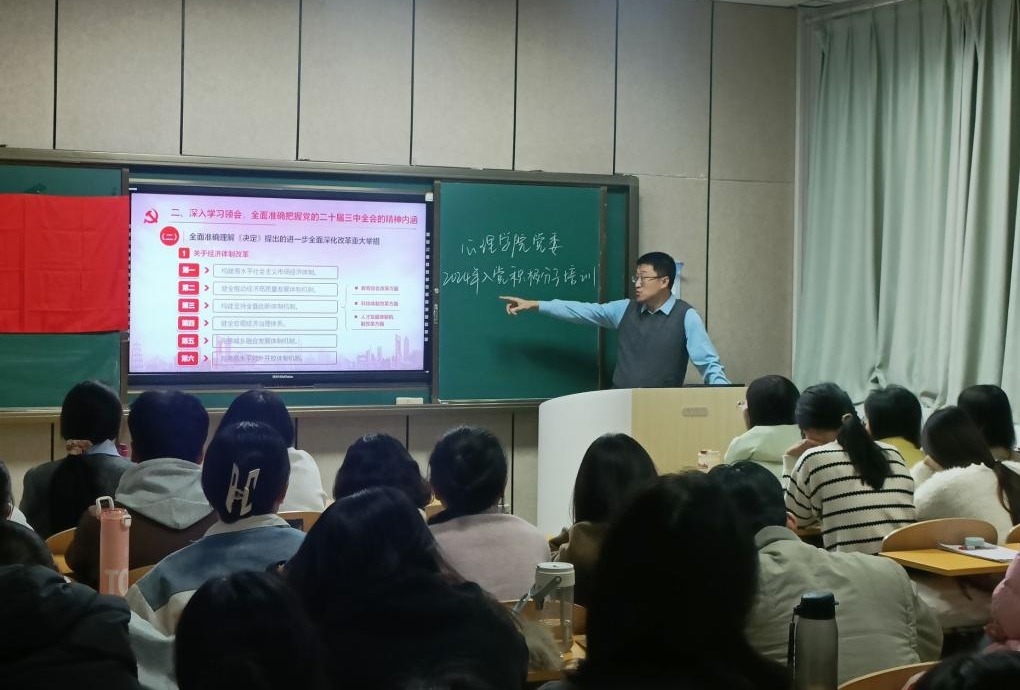 党委书记罗文伟以“凝聚改革共识,展现担当作为——学习领会党的二十届三中全会精神”为主题,为优秀学生党员代表和全体入党积极分子讲授专题党课,推动全会精神在基层落地生根。