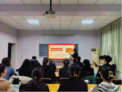 本科生党支部书记朱伟卫在8号楼201会议室为本科生党支部讲述《让青春在新征程绽放光芒》主题党课。