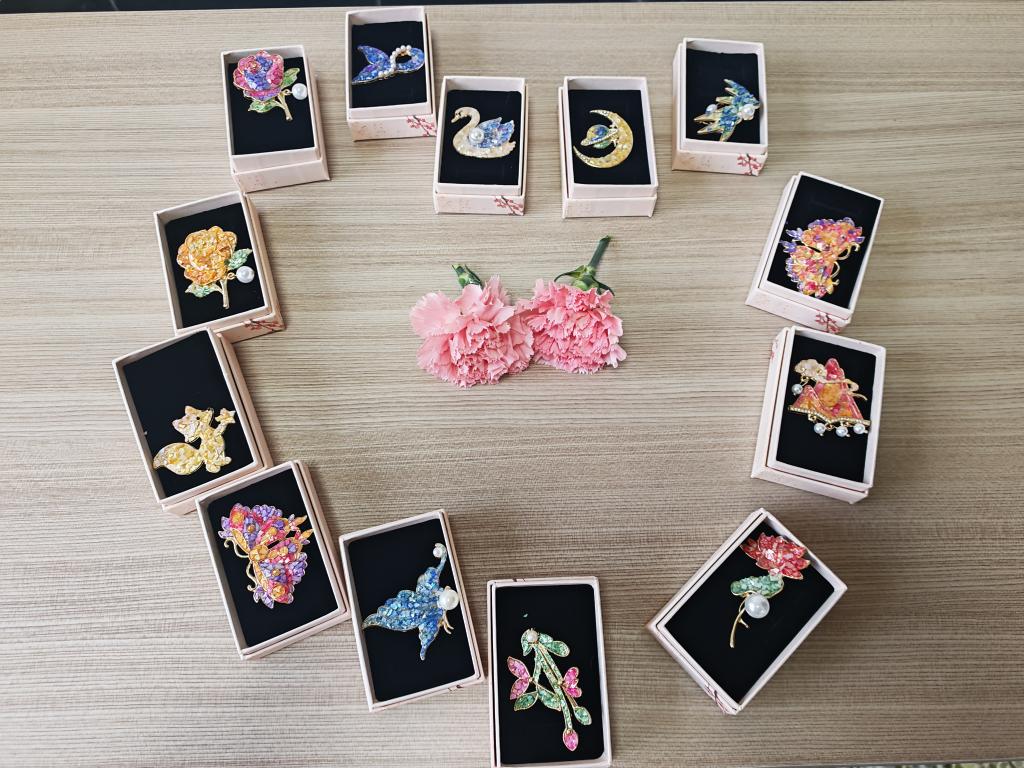 活动囊括了选片、磨碎、拼贴、固定等制作步骤,让大家近距离感受这项千年非遗技艺的独特魅力。现场摆放着色彩斑斓的珍珠母贝片、精致的胸针底托、特制胶水等材料,女教职工们兴致盎然,纷纷化身 “手作匠人”,结合美学构思与心理视角,在创作中融入对教育事业的热爱与期许。大家或细心拼贴纹样,或轻声交流创作心得,指尖翻飞间,原本零散的贝片逐渐化作一枚枚独具匠心的螺钿胸针,有的清新雅致,有的灵动精巧,每一件作品都承载着制作者的巧思与心意。