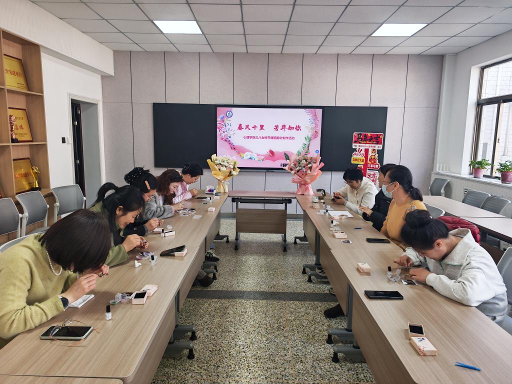 以“春风十里 芳华如你”为主题,在学院308会议室举办螺钿胸针制作活动,将非遗之美与节日祝福相融,向全体女教职工致以诚挚问候,同时以传统工艺之美为校园文化添彩,让育人初心在指尖匠心间熠熠生辉。