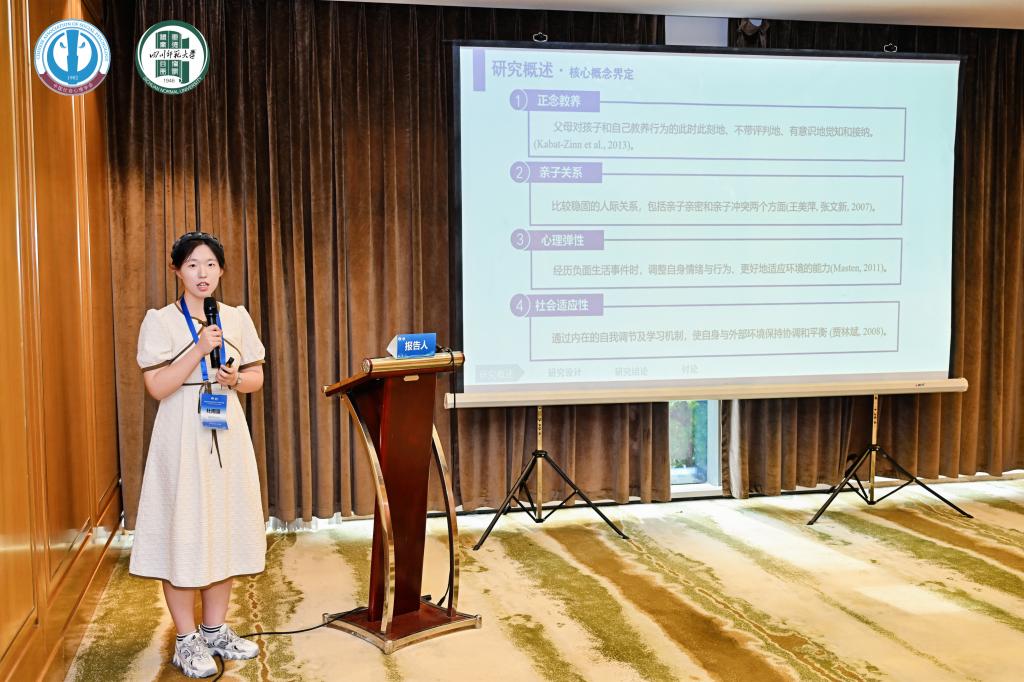 杜雨露同学的报告《养育的智慧:正念教养对农村留守儿童社会适应性的影响及其作用机制》聚焦社会热点问题,通过严谨的实证研究,系统探讨了正念教养对农村留守儿童这一特殊群体的积极影响。研究不仅揭示了正念教养提升留守儿童社会适应性的心理机制,更为相关教育实践提供了科学依据。报告过程中,杜雨露以清晰的逻辑、专业的表述和沉稳的台风,赢得了与会专家的一致好评。会上,杜雨露与参会专家学者进行了深入交流。