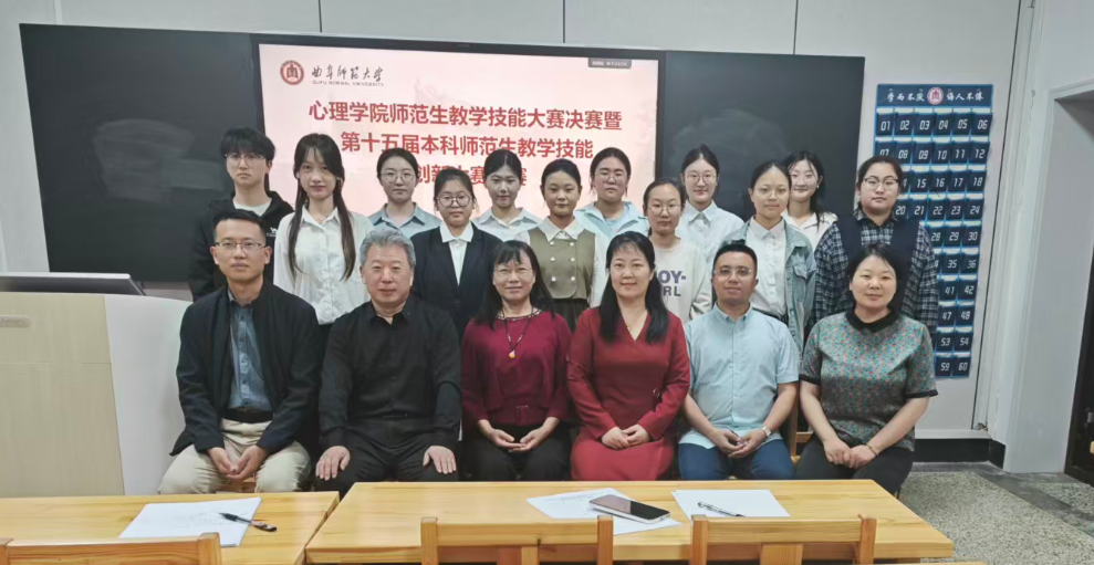 在心理楼109教室成功举办师范生教学技能大赛决赛暨第十五届本科师范生教学技能创新大赛预赛。李海青、张雯、魏祥迁、陈圣栋、孙传波五位教师出席比赛并担任评委。