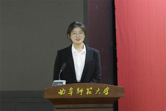 言为士则,行为世范;既做“经师”,更做“人师”。典礼第五项,青年教师代表、心理学公共课教研室主任孙传波老师发言。孙老师倾情分享了自己初入曲园的热切和激动,同时详尽介绍了自己大学四年的课程和学余活动,以亲身经历为引,生动幽默地教育和引导大家要开放包容、充实丰富的度过大学生活,并对新同学们给予了新学期的祝福和问候。