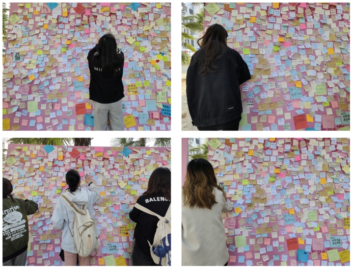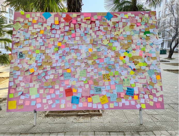 活动期间,全校学生积极参与其中,通过便利贴抒写“平安喜乐”“教资必过”等期待和感想,倾诉自己的疑惑和焦虑,并分别黏贴在展板“烦恼倾诉”“我问你答”“爱心鼓励”三个不同的区域。与此同时,展板旁设有“情绪垃圾桶”,同学们将写有消极情绪的纸条投入其中,有抛弃烦恼的美好寓意。同时,针对同学们显现出的心理问题,学院邀请专业老师前来解答,希望曲园学子能够在春天收获温暖,在一张张便利贴中得到答案,在教师寄语中汲取力量。
