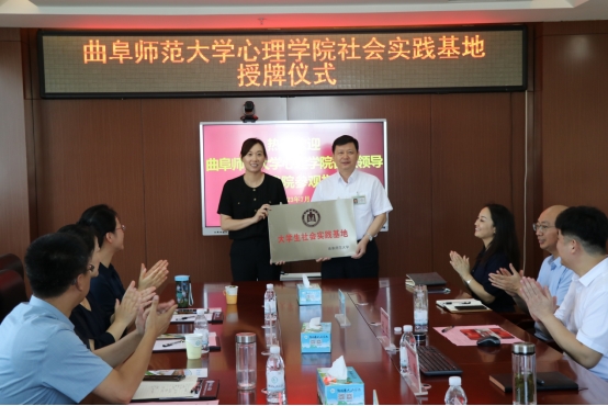 心理学院大学生社会实践基地挂牌仪式在邹城市人民医院顺利举行。邹城人民医院院长秦鹏、党委委员纪委书记李晓光、工会主席程非及相关科室负责人,心理学院党委书记罗文伟、校团委副书记张颖、院党委副书记朱伟卫、副院长李海青、院团委书记赵旭涛出席本次活动。
