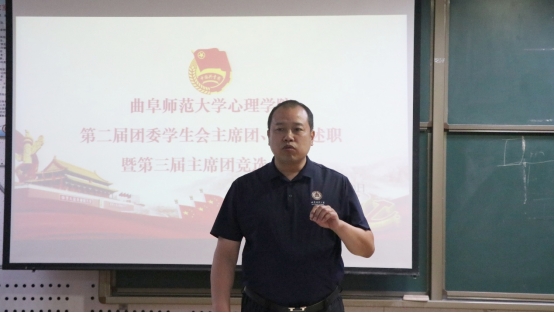 会议第三项,团委书记赵旭涛老师进行总结发言。引导大家明确演讲竞选的目的和意义,强调工作的大局意识和整体性,借此加深成员们对工作的理解与认识。