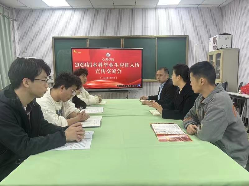 )为增进毕业生对国家征兵入伍政策的了解,激发毕业生应征入伍的积极性。2024年3月27日上午,学院召开2024届本科毕业生应征入伍宣传交流会。学院党委副书记朱伟卫、团委书记兼2020级辅导员赵旭涛、退伍士兵王荣学(研究生)以及部分2020级男生参与会议。