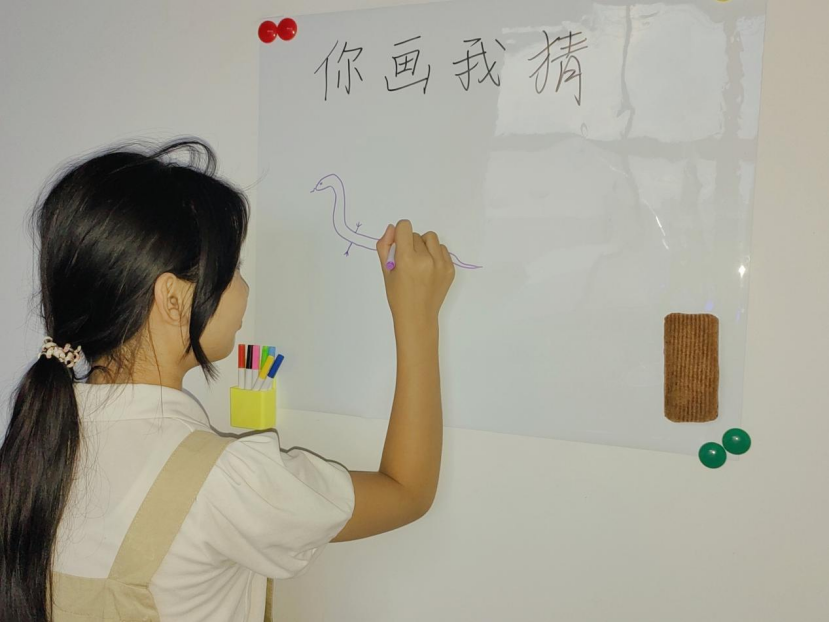 志愿者们组织“你画我猜”这一游戏,以小组形式开展活动,旨在培养团队之间的默契和协作能力。游戏中,每组的“小画家们”手握彩笔,在空白的画纸上绘制出自己对词语的独特理解,而另一边,作为猜测者的孩子们紧盯着画纸上的一笔一划,试图找到谜题的正确答案,每一次的猜测都伴随着欢声笑语,让游戏现场充满了活力与乐趣。在这个过程中,孩子们学会了如何更有效地沟通与合作,共同寻找答案。同时,这个游戏锻炼了他们的观察力和思维能力,让他们学会了从不同角度去看待问题,发现事物之间的内在联系。
