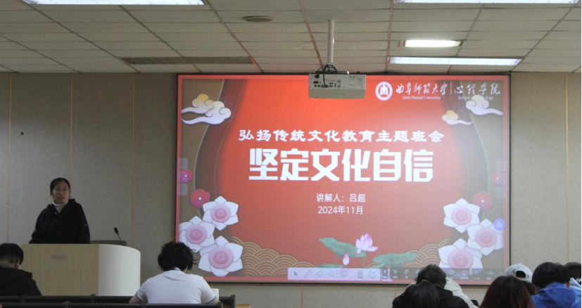 图1 2024级本科生辅导员吕超以“弘扬传统文化,坚定文化自信”为题开展教育主题班会