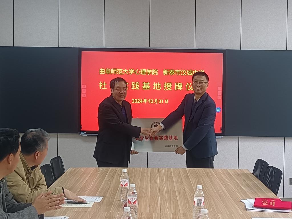 图 新泰市汶城中学与我院签订合作协议并举行了教育实践基地授牌和导师聘任仪式