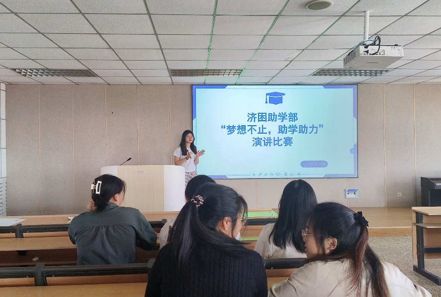 于4月20日在415室举办了“梦想不止,助学助力”演讲比赛,各级本科生踊跃参加。