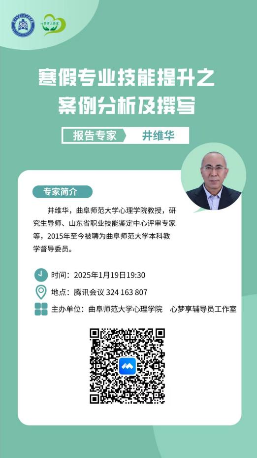 图3 井维华教授作“心理案例分析及撰写”专题报告海报