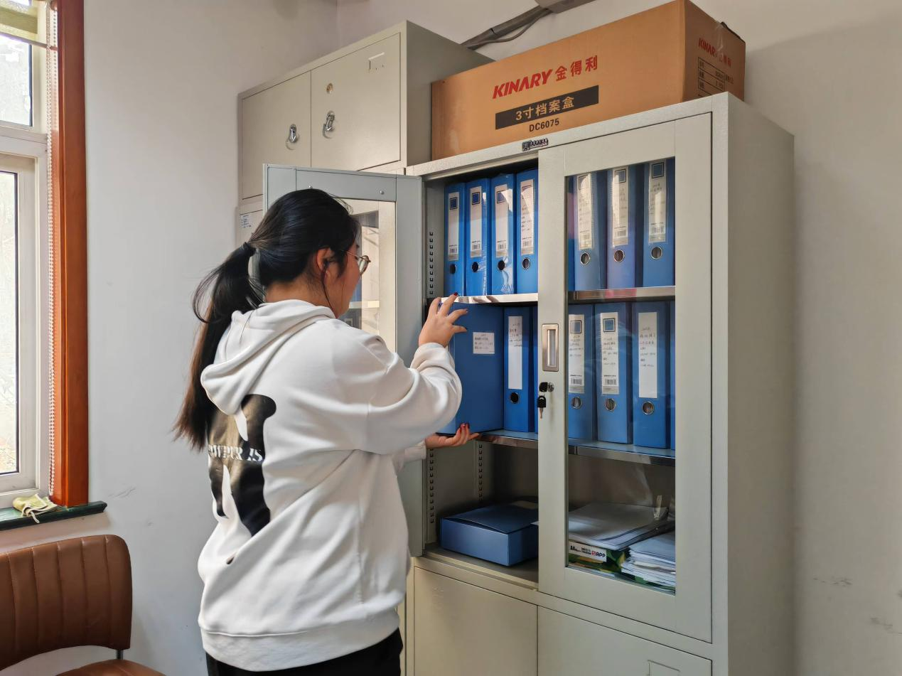 “红心筑梦践基层,多元共融启新程”实践队员在整理档案资料