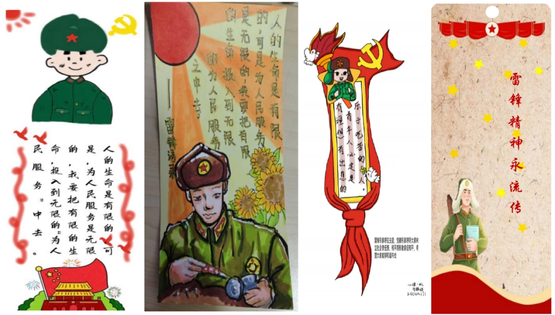 活动期间,同学们热情高涨,纷纷展现自己的创意和才华,设计并制作出一张张独具匠心的书签。他们有的在书签上写下励志语句,如“学习雷锋好榜样,忠于革命忠于党”“奉献他人,提升自己”等,激励自己和他人学习积极向上、甘于奉献的雷锋精神;有的绘制雷锋相关图案,如雷锋画像、雷锋做好事的场景等,以细腻的笔触刻画并展现雷锋精神;还有的结合心理学专业知识,以心理小贴士的形式设计出既有教育意义又美观实用的书签,充分展现了同学们对雷锋精神的理解和感悟,也体现了他们对心理健康的关注和重视。
