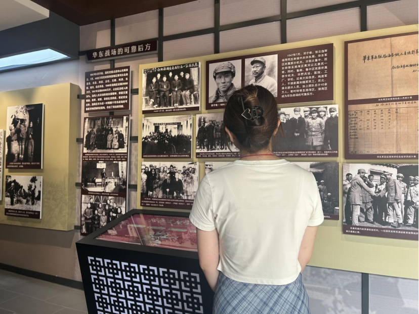 “这里曾是渤海区党委、行署、军区的办公所在地,在抗战和解放战争时期发挥了重要作用。”讲解员详细介绍了渤海老区的光辉历史:从抗战时期开展游击斗争、建立抗日根据地,组织群众生产自救、支援前线,到解放战争时期动员军民参军参战、保障物资供应,为全国解放事业作出的重要贡献。期间,一个个感人至深的故事让队员们深受触动——有不顾个人安危掩护群众转移的党员干部,有倾尽家资支援革命的普通百姓,有在战斗中英勇牺牲的年轻战士…… 这些故事让队员们深刻体会到,红色政权的建立离不开革命先辈的浴血奋战,更离不开军民同心的鱼水深情。