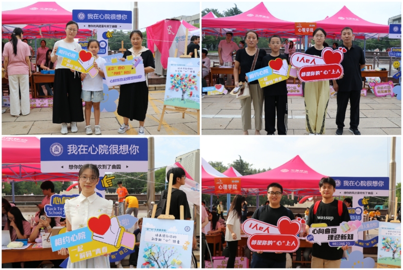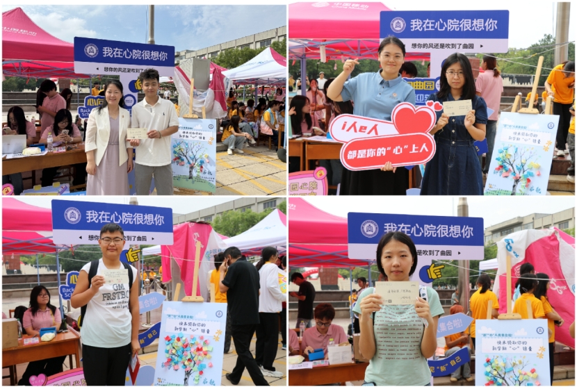 迎新现场,学院通过丰富多彩的创意活动,为新生定格入学记忆、传递温暖关怀。为此,“新学期‘心’锦囊”活动为新生设置了内含心理学小贴士的知识锦囊,答题正确可获得教师寄语,答错者则将锦囊暂时封存,待后续学习后再开启验收。完成答题后,新同学们会留下自己的指印,一张张带有印记的便签、一对对呈现心形的指印,汇聚成完整的“心”形树冠,既象征着新生与爱情岛论坛 共同扎根、一同成长,也让大家在趣味互动中直观感受到学科魅力,承载着学院对他们探索心理学的美好期许。同时,学院设置了特色摄影区,并提供“我在心院很想你”“相约心院”“心向曲园”等特色手举牌。新生们在此拍照留念,通过具象化的场景强化“心院学子”的身份认同,将这一刻的温馨定格为大学归属感与集体记忆的起点,为崭新的大学生活镌刻下充满仪式感的开篇序章。