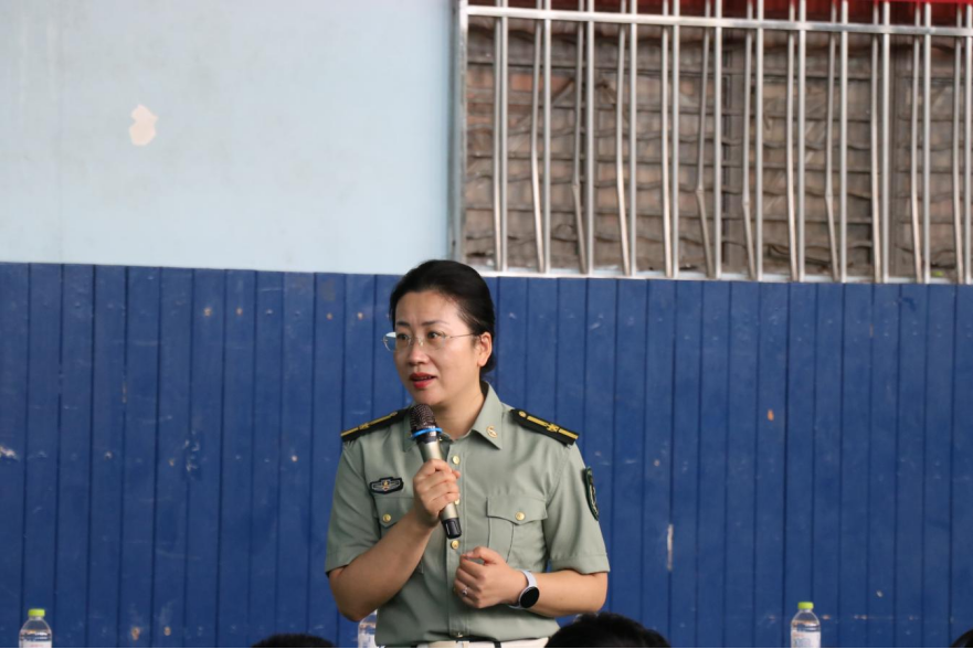 大会伊始,朱伟卫为2025级新生们介绍了到场的各位领导老师和军训教官,并对他们的到来表示了热烈的欢迎和衷心的感谢。随后,罗文伟围绕军训组织工作与纪律要求发表重要讲话。他强调,军训是大学生涯关键一课,既锤炼身体素质,更涵养纪律观念、团队精神与集体荣誉感。