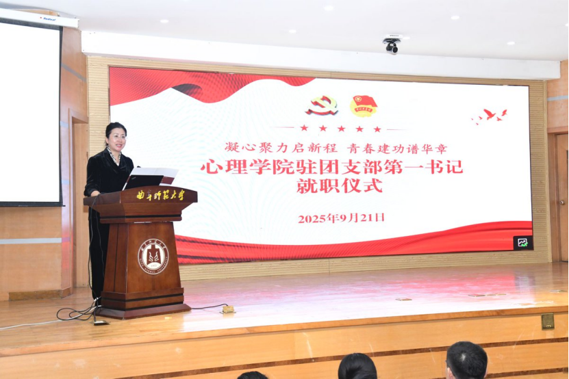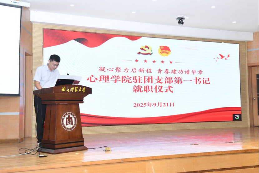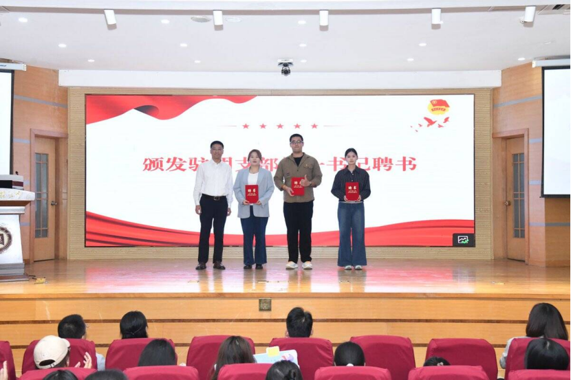 2025年驻团支部第一书记聘任通知,聘任优秀党员杨新钰、王润泽、张誉烨同志分别为驻2025级心理学(师范)一班、心理学(师范)二班和心理学非师范班团支部第一书记。学院党委书记罗文伟为三位驻团支部第一书记颁发聘书。