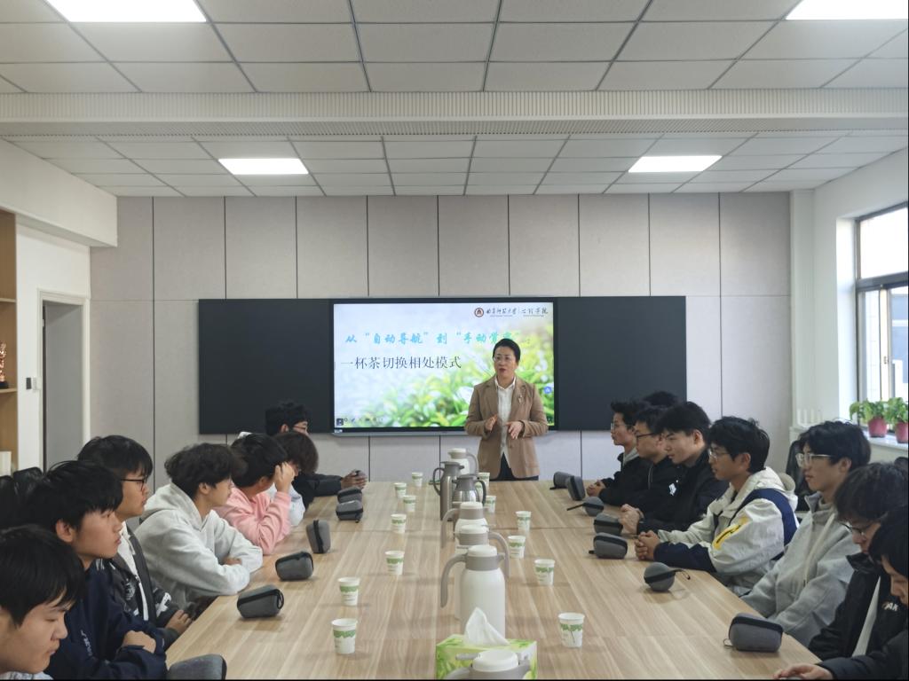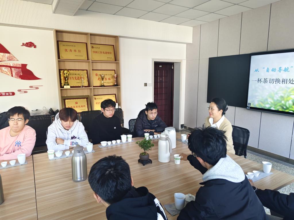党委副书记朱伟卫与2025级男生围坐一堂,借助茶文化体验活动,深入探讨宿舍关系及人际相处的方法,将中华优秀传统文化与现代心理学智慧有机融合,为学生带来了从“自动导航”到“手动觉察”相处模式转换的独特体验。