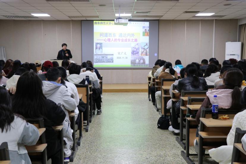 讲座紧扣“跨文化融合”与“知行合一”两大核心命题展开。宋教授指出西方心理学以实证主义为根基,而东方心理学则立足心性哲学。他点明心理人的专业成长是一个从“问道”到“通达”的螺旋式上升过程。“问道”是寻求心理学内在的根本规律,而非简单记忆知识;“通达”则是通过打通学科壁垒、整合东西方智慧,最终实现内在精神修养与外在专业技能的双向滋养。他强调,当代心理学专业教育必须突破文化藩篱,在实验数据与人文关怀、技术操作与灵性成长之间构建对话桥梁。