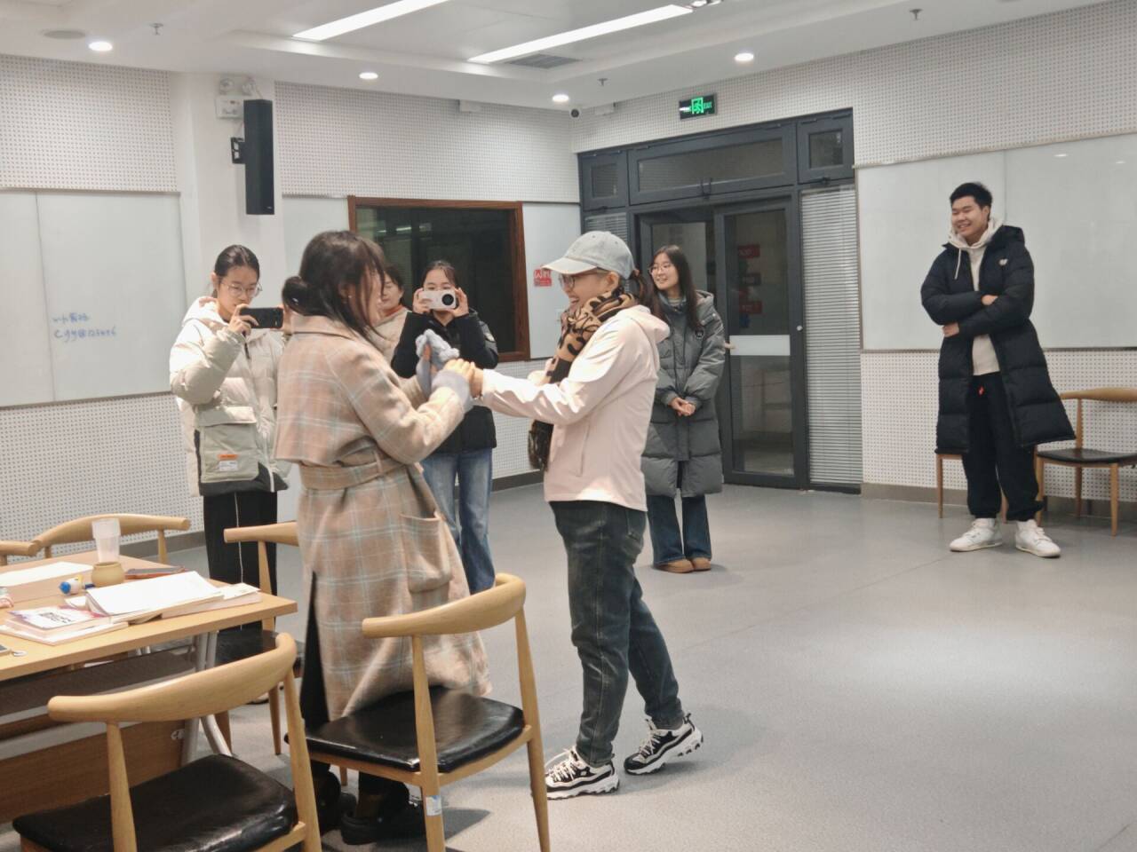 活动现场,实践队志愿者们以专业、细致的服务为读书沙龙全程保驾护航,从前期活动筹备、流程规划,到布置温馨舒适的活动现场、现场组织执行,每一个环节都凝聚着志愿力量与专业思考。志愿者们率先牵头组织破冰环节,志愿者与参与者依次进行自我介绍,随后开展趣味送礼物游戏。参与者手持小礼物,自主选择赠予对象并真诚诉说赠送缘由,或是因共鸣的观点、或是因初见的好感、或是因对彼此成长的期许,破冰游戏让参与者们在互动中消解陌生感,也为后续的深度共读营造了轻松、包容的交流氛围。