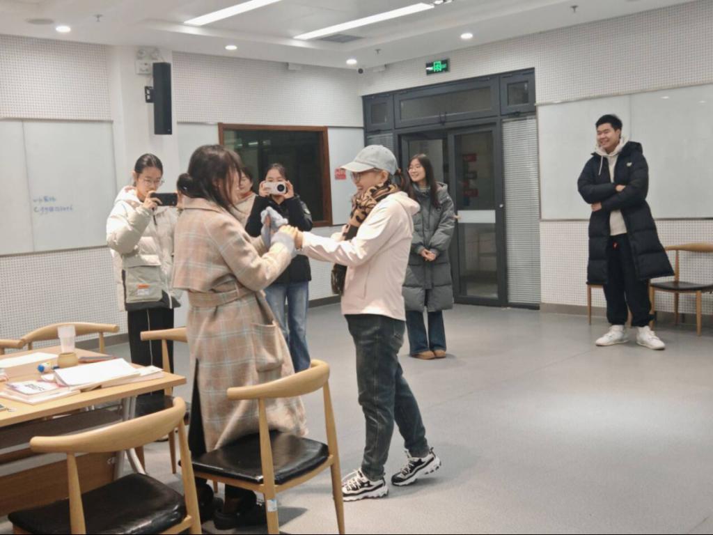 从活动前的筹备策划,到布置温馨舒适的活动现场、现场组织执行,实践队志愿者始终秉持专业与细致的态度,确保沙龙活动顺利进行。活动以轻松有趣的破冰游戏开场,参与者依次进行自我介绍并进行礼物互赠。参与者手持小礼物,自主选择赠予对象并真诚诉说赠送缘由,或是因共鸣的观点、或是因初见的好感、或是因对彼此成长的期许,破冰游戏让参与者们在互动中消解陌生感,也为后续的深度共读营造了轻松、包容的交流氛围。