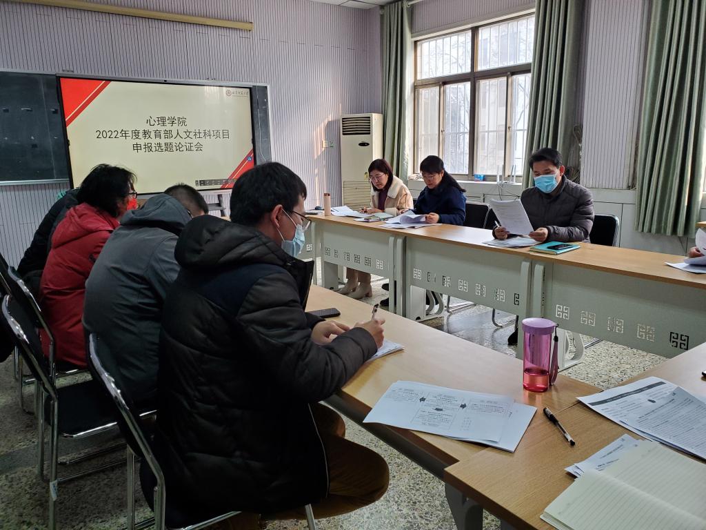 2022年度教育部人文社会科学研究项目论证会。此次会议邀请了何文广教授、井维华教授、李朝旭教授、牛盾副教授、孙俊才副教授、王晓明副教授、王涛副教授和杨庆副教授共八位老师担任点评专家,申报教育部人文社会科学研究项目的六位老师参加会议。