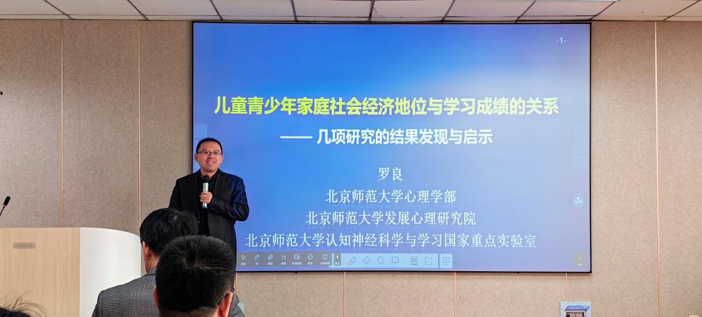 415报告厅,做了题为《儿童青少年家庭社会经济地位与学习成绩的关系》的学术报告。报告由院长何文广教授主持,学院师生百余人参与。