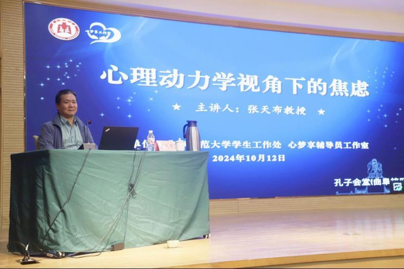 报告中,张天布教授以当前社会心理健康问题备受重视为前提,结合诊疗过程中的具体案例,通过简单易懂的语言向大家介绍了焦虑的概念及其常见形式。首先,他以大学生身份转变带来的巨大变化为例,分析了大学生常见的几种焦虑类型,以浅显易懂的形式介绍了投射性思维、躯体化反应等心理学知识,并指出辅导员应从不同层面考虑学生问题、剖析学生性格,以学生为主体做功能水平评估,从而更好地帮助学生解决问题,走出困境。张教授强调,在沟通时应当注意清晰、具体、描述、客观,避免引起不必要的误解和歧义,从而影响谈心谈话的效果。接着,张教授结合对社会心理问题的研究,深入阐释了精神病、人格障碍和神经症引发焦虑所表现出的内外不分、你我不分、前后不分的症状特点,还介绍了客体丧失的焦虑、竞争带来的焦虑等常见的焦虑诱因及其表征。