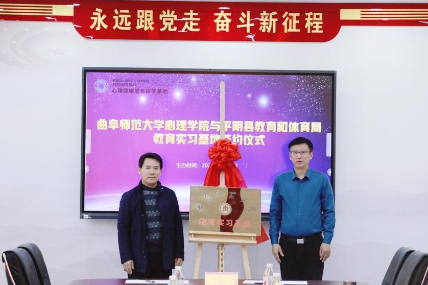的师范生提供了宝贵的实践机会,也为平阴县心理健康教育的发展注入了新的活力。签约仪式的最后,何文广院长与孙海平同志共同为教育实习基地揭牌,象征着双方合作项目的正式启动。