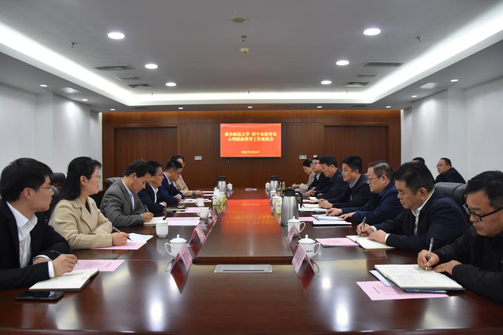 而引以为傲,希望通过此次调研交流活动,能够促进彼此产教融合,提高济宁市教育质量,全面建设好济宁市教育系统心理服务体系,治好“未病之病”。随后,双方在教师招聘、人才智库、实习实践基地建设、心理健康教师培训、心理普查、家庭体育、科研流动站等方面进行了深入研讨。