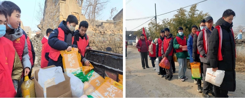 寒风挡不住暖意,温情浸润着人心。活动当日,实践队成员奔赴忠厚村、付庄乡入户开展帮扶工作。实践队员为老人们送上生活物资与新春祝福,帮忙贴春联、扫庭院、整理房间,用实干为老人送去便利。实践队还重点关注了高龄、失能老人的特殊需求。对于行动不便的老人,实践队员队员通过陪伴聊天、读报念信等方式给予情感支持,耐心倾听他们讲述生活的琐碎与不便,记录下实际需求反馈村委会。活动过程中,实践队员始终秉持专业、耐心、细致的态度,用真诚的陪伴与专业的服务赢得了老人们的一致认可与村委会的高度评价