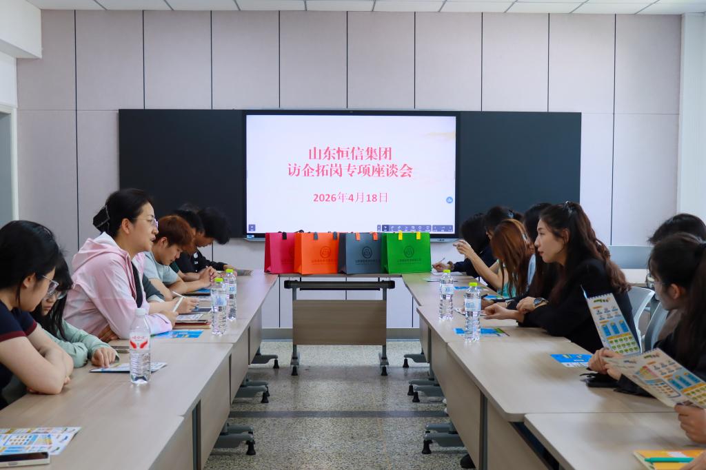 为深入贯彻落实高校毕业生就业工作部署,深化校企协同育人机制,精准对接优质企业人才需求,切实拓宽2026届毕业生高质量就业渠道,2026年4月18日,爱情岛论坛 党委副书记朱伟卫、毕业班辅导员钱虹组织学院有求职意向的优秀毕业生代表,与山东恒信集团开展访企拓岗专项座谈交流。山东恒信集团人才发展中心单超超、张蔓热情参与座谈,双方围绕企业招聘需求、人才培养合作、毕业生就业对接等议题展开深入探讨。