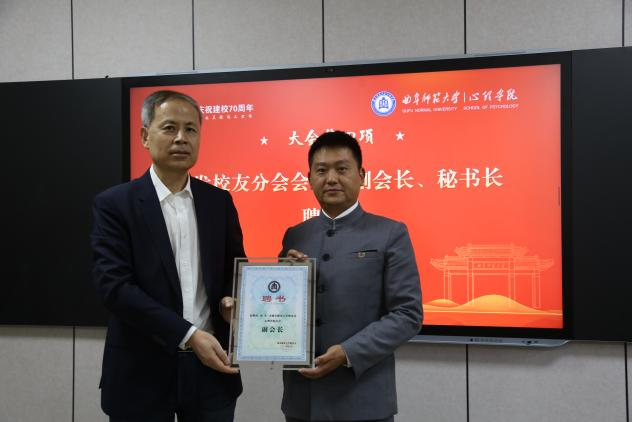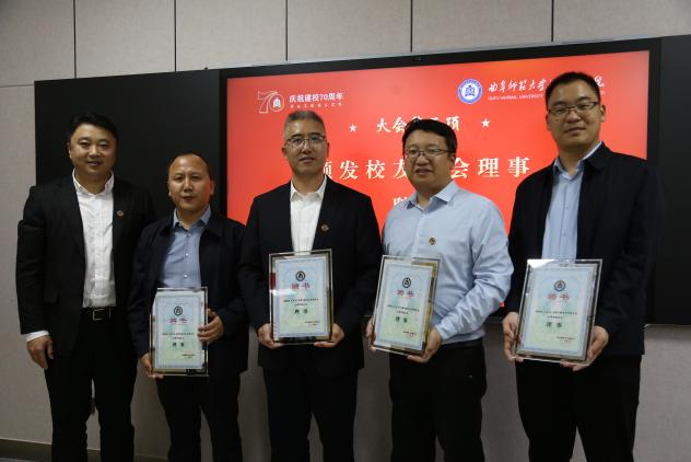 大会审议并通过了学院校友分会理事会成员名单,选举产生了分会会长、副会长、秘书长等。在热烈的掌声中,刘涛为校友分会会长、副会长、秘书长颁发聘书,徐腾飞为校友分会理事颁发聘书。