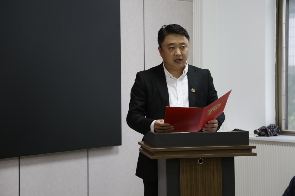 图3 国内合作处校友工作办公室主任徐腾飞宣读成立批复