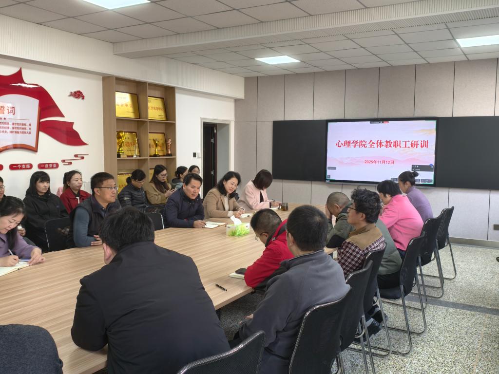 于2025年11月12日下午在学院308会议室开展第十九期全体教师研训活动,组织教职工集中观看时政微视频《躬耕教坛 强国有我》。