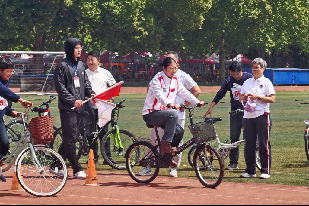 个人项目中,老师们全力以赴、奋勇争先,每一份坚持都闪耀着奋进光芒。铅球比赛现场,朱伟卫老师姿态利落,屈膝转体间积蓄力量,奋力一推,铅球在空中划出一道有力弧线,凭借扎实功底斩获第二名的优异成绩。中老年长跑赛道上,丹拥军老师步伐稳健、面色从容,全程咬紧牙关、坚持到底,用毅力完成赛程,荣获第六名。自行车慢骑比赛里,吕超老师双手紧握车把,精准把控平衡,车轮近乎静止却始终稳控车身,缓缓骑完全程,收获第七名的好成绩。