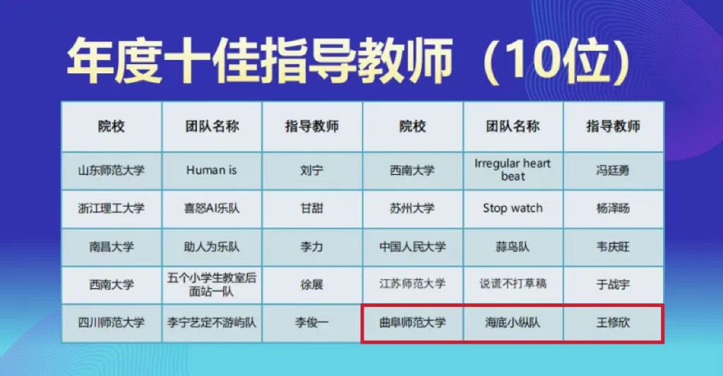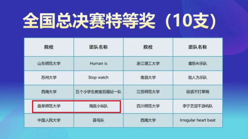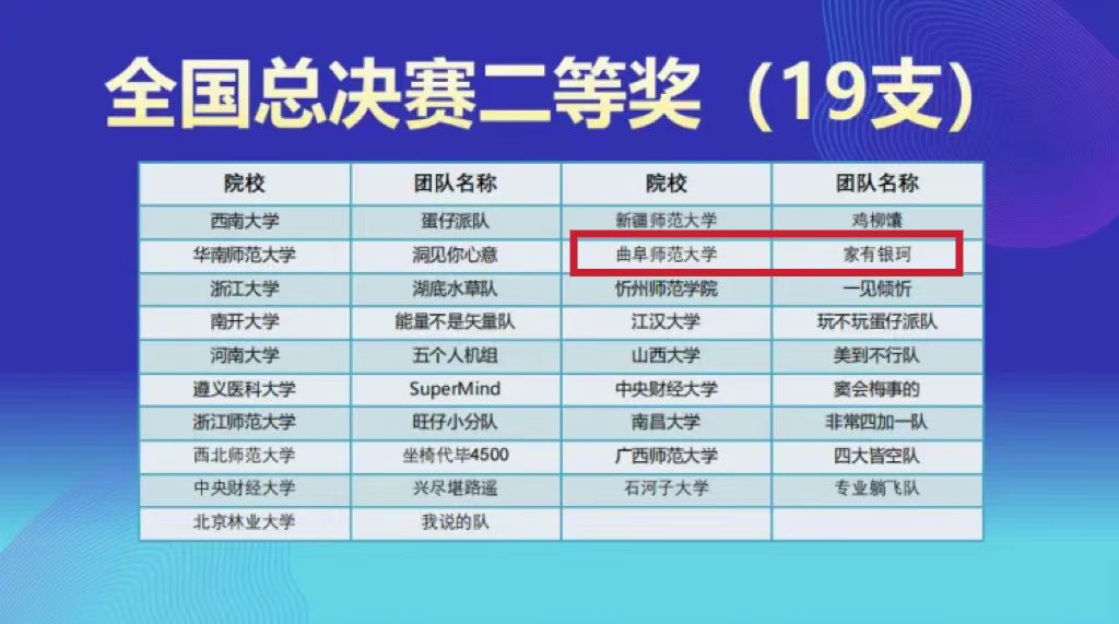 我院共有20支队伍参加校级选拔赛,其中获得校级一等奖的队伍进入分区赛竞赛。在6支队伍晋级分区赛的队伍中,共获得分赛区竞赛一等奖2项、二等奖3项、三等奖1项。其中,获得分赛区竞赛一等奖的“海底小纵队”“家有银珂”两支团队顺利晋级全国总决赛,与来自四个赛区的其他58支队伍展开了激烈的角逐。最终,“海底小纵队”获得全国总决赛特等奖,指导老师王修欣副教授获年度十佳指导教师、优秀指导教师称号;“家有银珂”获全国总决赛二等奖,指导老师王晓明副教授获优秀指导教师称号;爱情岛论坛