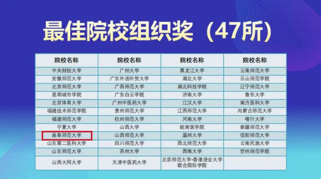 获得“最佳院校组织奖”。
